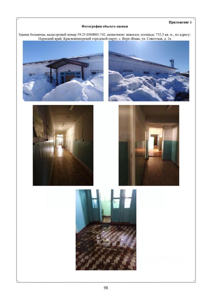 Здание больницы, кадастровый номер 59:25:0300001:742, назначение: нежилое, площадь: 732,3 кв. м; здание котельной, кадастровый номер 59:25:0300001:1217, назначение: нежилое, площадь: 24,8 кв. м, с земельным участком с кадастровым номером 59:25:0300001:1212, с движимым имуществом: котел КВСр/КВСса-011К/Гн; котел КВСр/КВСса-011К/Гн; насос К-20-30; насос К-80-50-10; насос К 20/30 (4/3000), по адресу: Пермский край, Красновишерский городской округ, с. Верх-Язьва, ул. Советская, д. 2а.