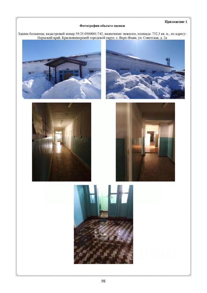 Здание больницы, кадастровый номер 59:25:0300001:742, назначение: нежилое, площадь: 732,3 кв. м; здание котельной, кадастровый номер 59:25:0300001:1217, назначение: нежилое, площадь: 24,8 кв. м, с земельным участком с кадастровым номером 59:25:0300001:1212, с движимым имуществом: котел КВСр/КВСса-011К/Гн; котел КВСр/КВСса-011К/Гн; насос К-20-30; насос К-80-50-10; насос К 20/30 (4/3000), по адресу: Пермский край, Красновишерский городской округ, с. Верх-Язьва, ул. Советская, д. 2а.