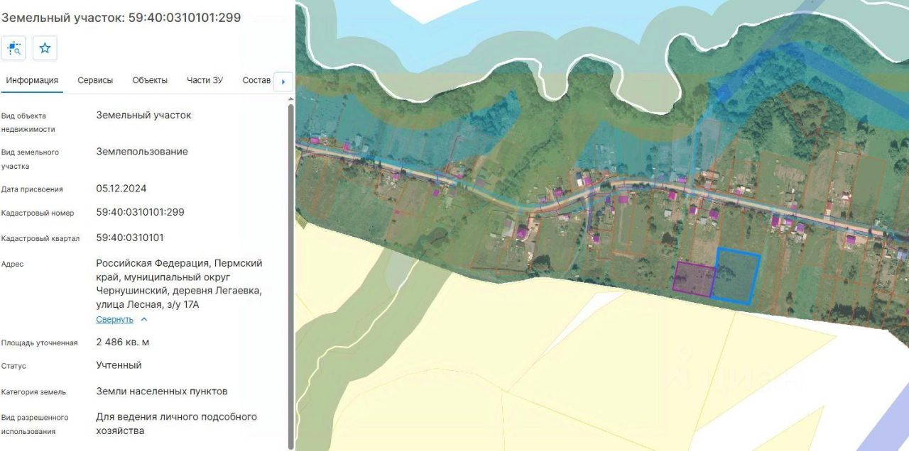 Земельный участок с кадастровым номером 59:40:0310101:299