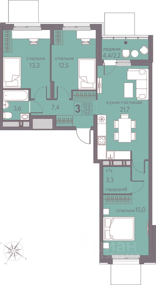 Продаётся 3-комнатная квартира в строящемся доме (Серебристая, 5), срок сдачи: I-кв. 2026, общей площадью 79 кв.м., на 2 этаже. Теплые кварталы "Погода" — это новый грандиозный проект от создателя Спортивного микрорайона "Ива", федерального застройщика "Девелопмент-Юг" .