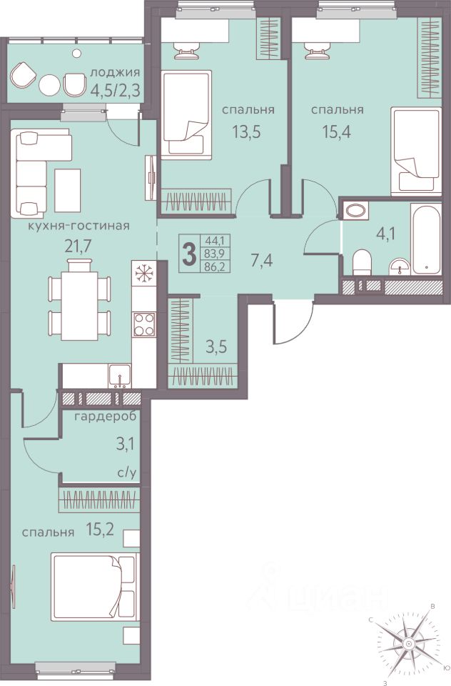 Продаётся 3-комнатная квартира в строящемся доме (Серебристая, 5), срок сдачи: I-кв. 2026, общей площадью 86.2 кв.м., на 4 этаже. Теплые кварталы "Погода" — это новый грандиозный проект от создателя Спортивного микрорайона "Ива", федерального застройщика "Девелопмент-Юг" .