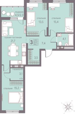 86,2 м²