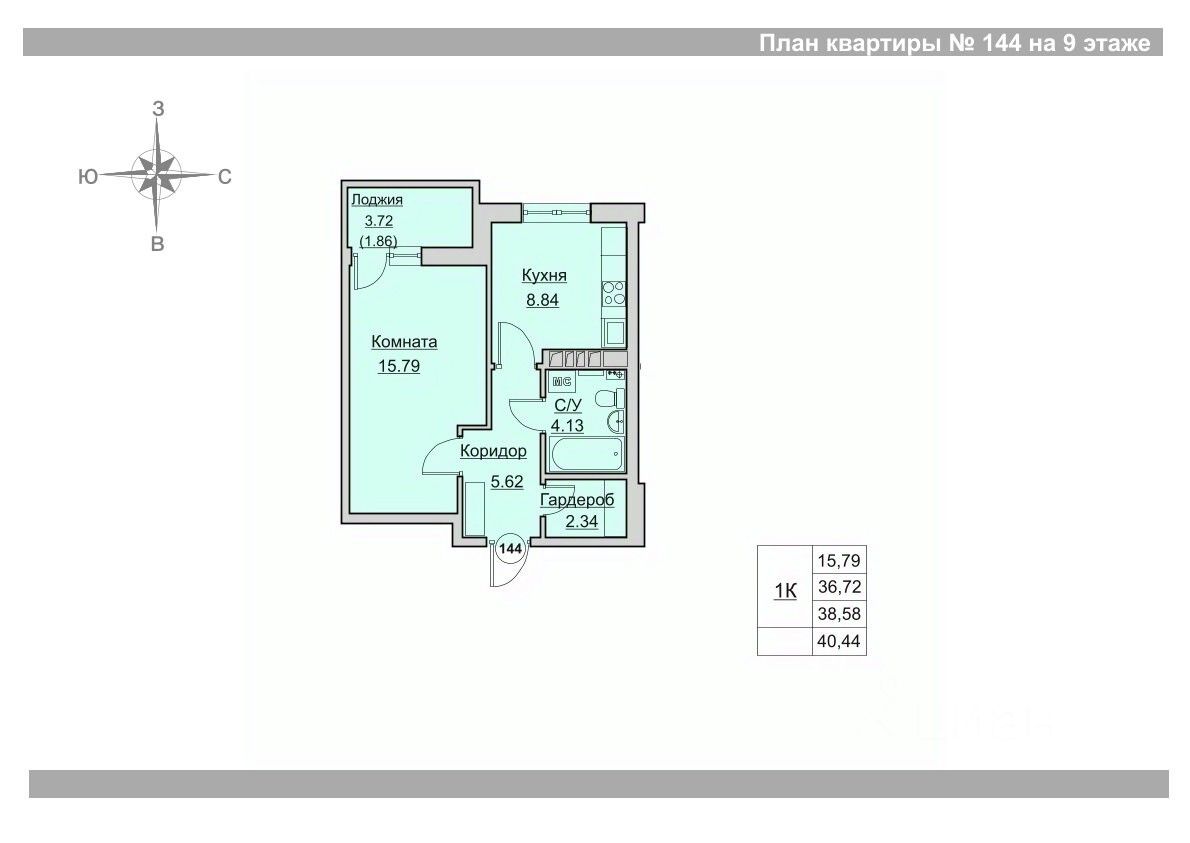 Общая площадь38,58 м²