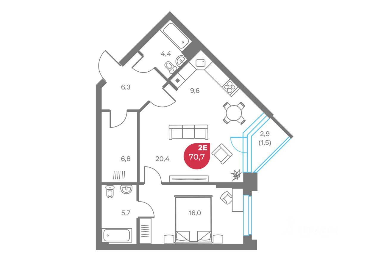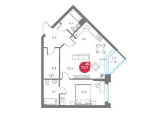 Общая площадь70,7 м²