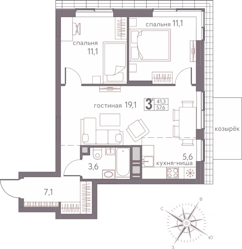 57,6 м²