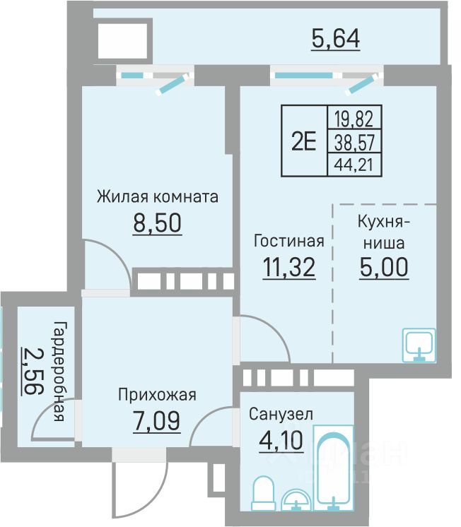 Общая площадь44,21 м²