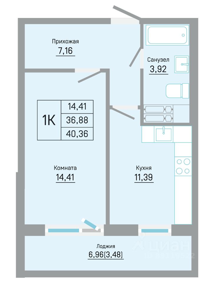 Общая площадь40,36 м²
