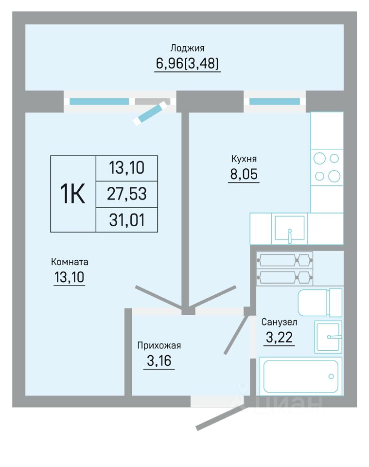 Общая площадь31,01 м²