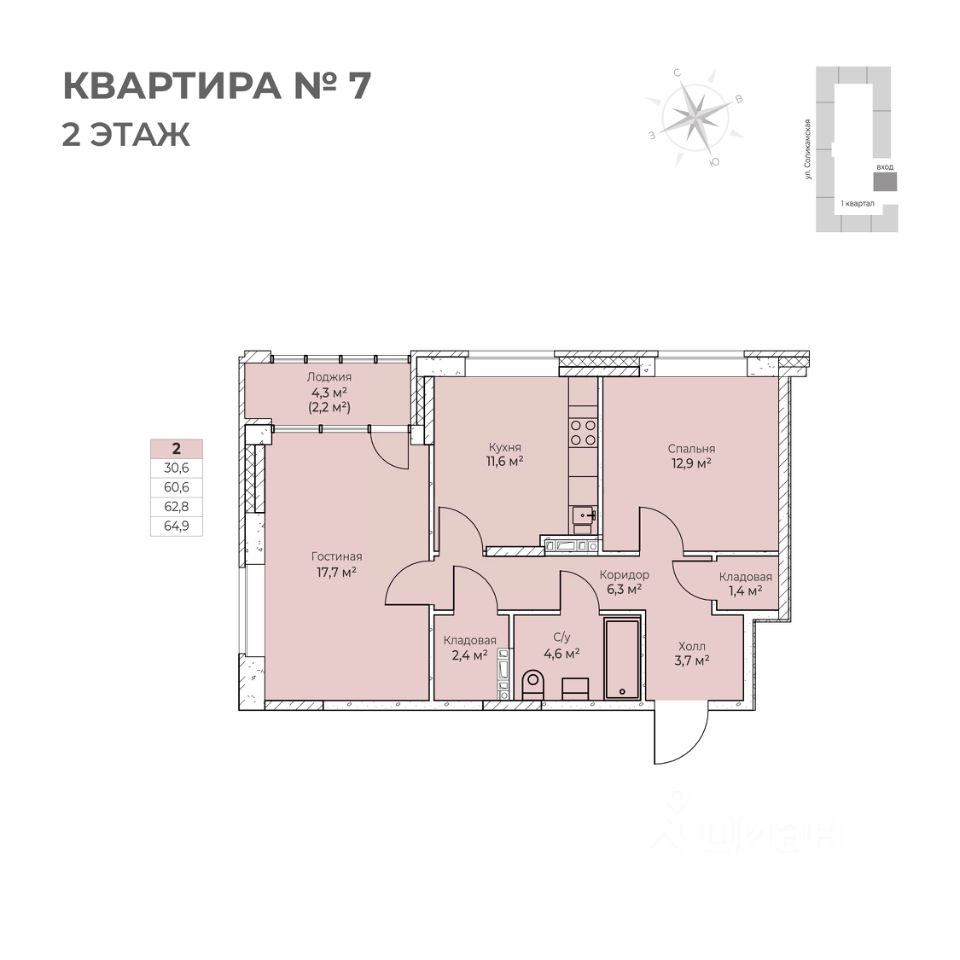 64,9 м²