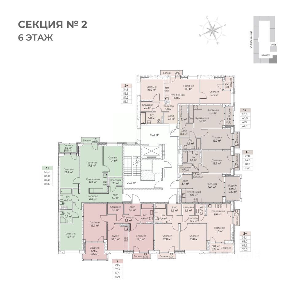 1 лоджия, 1 балкон