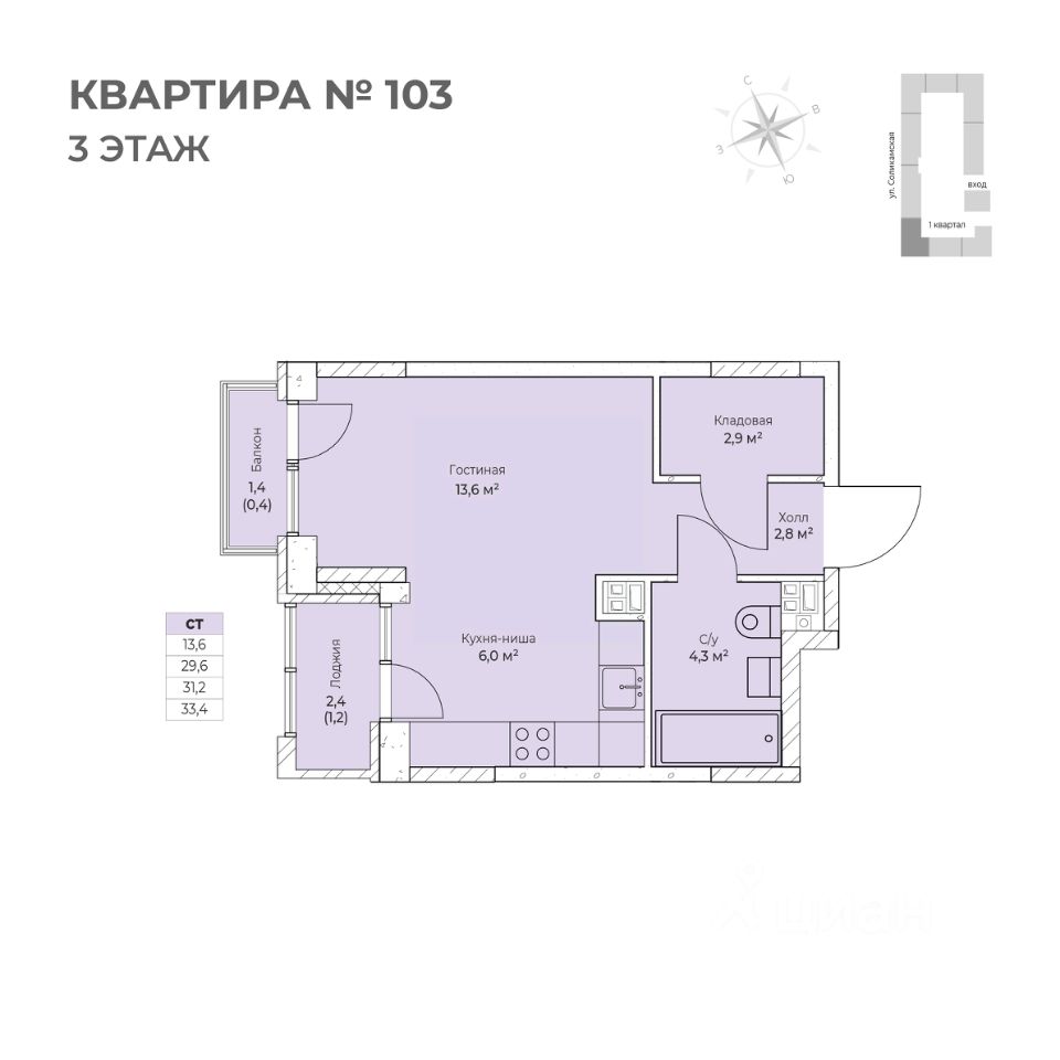 33,4 м²