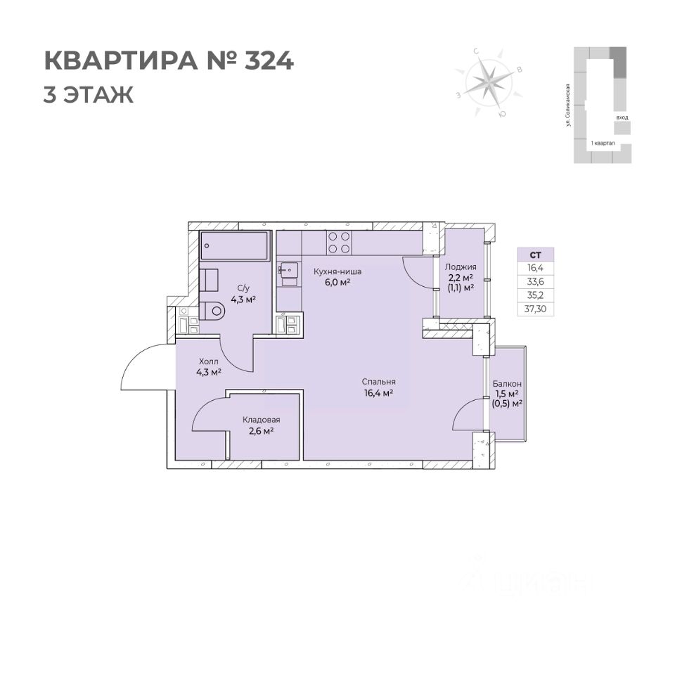 1 лоджия, 1 балкон