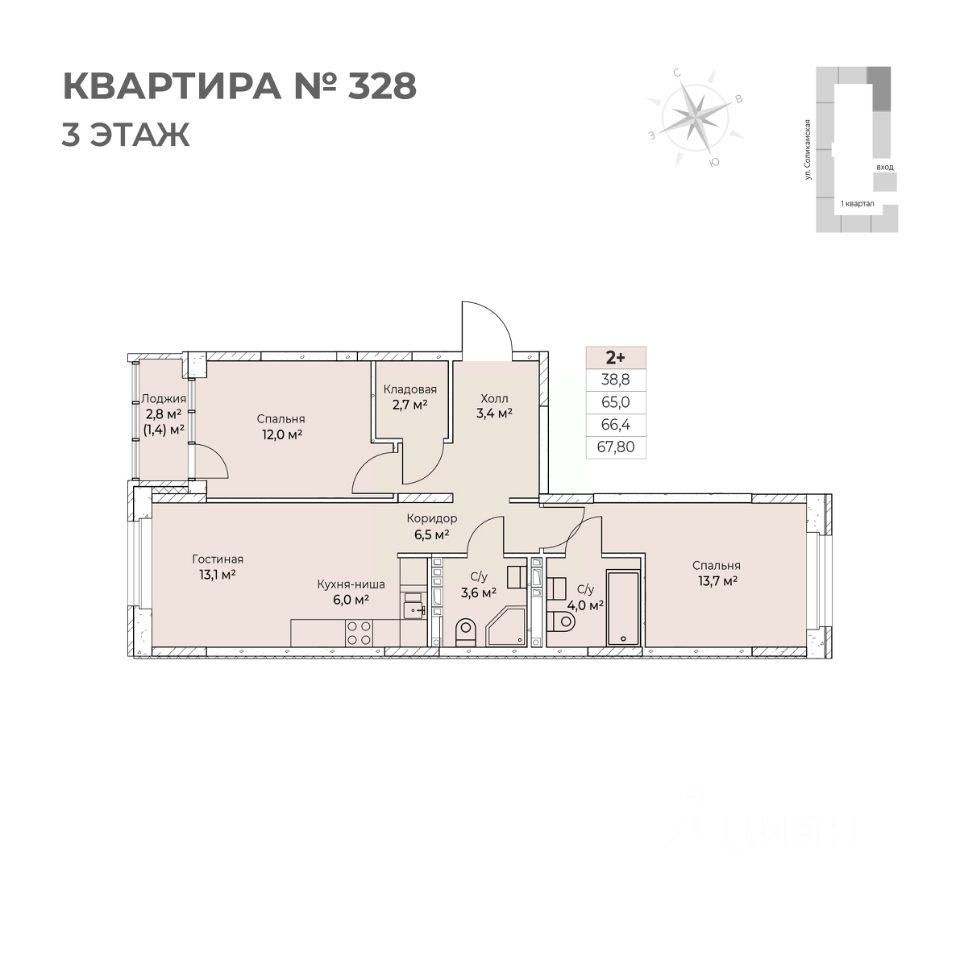67,8 м²
