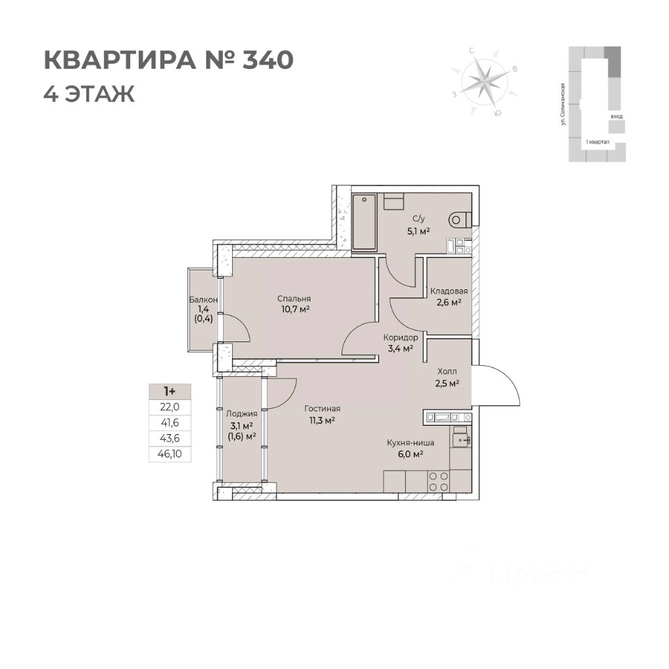 1 лоджия, 1 балкон