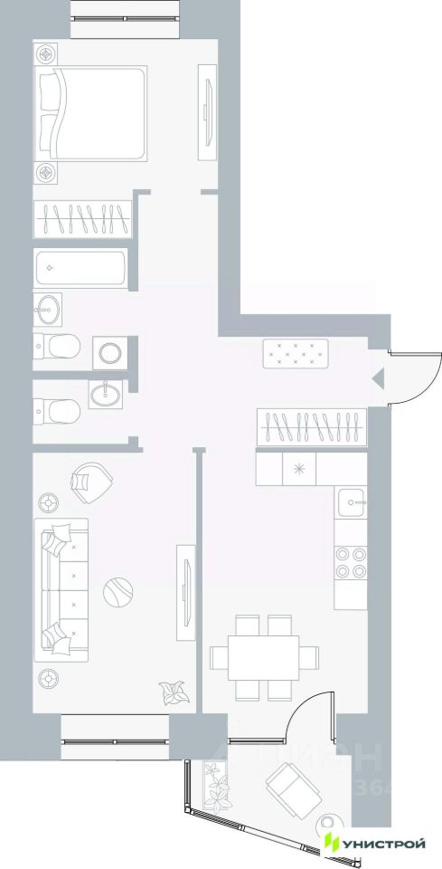 Разнообразные планировки студии, однокомнатные, евроварианты с просторными кухнями-гостиными, с гардеробными, двух-, трёхкомнатные. Квартиры с балконами, тёплыми лоджиями и двумя санузлами.