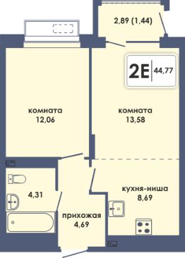 Общая площадь44,77 м²