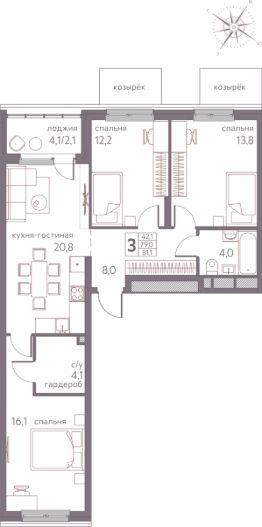 42,1 м²