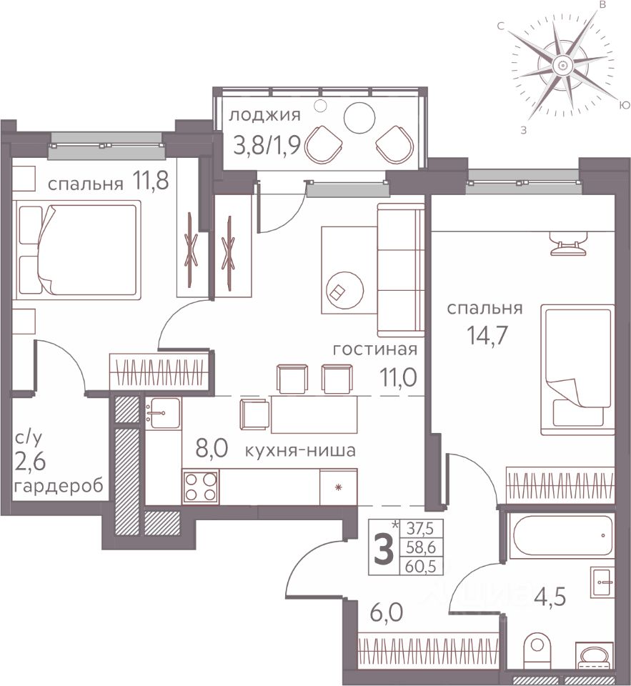 60,5 м²