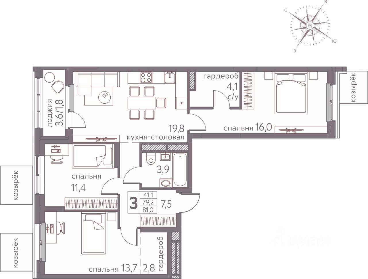 Продаётся 3-комнатная квартира в строящемся доме (Серебристая, 3), срок сдачи: III-кв. 2026, общей площадью 81 кв.м., на 2 этаже. Теплые кварталы "Погода" — это новый грандиозный проект от создателя Спортивного микрорайона "Ива", федерального застройщика "Девелопмент-Юг" .