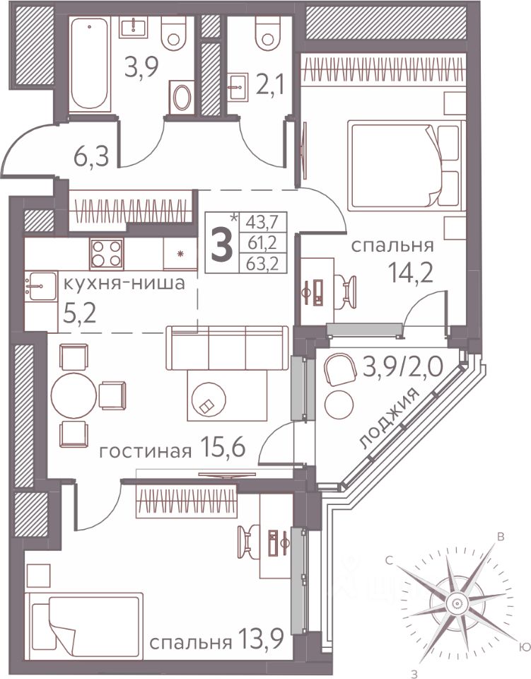 63,2 м²