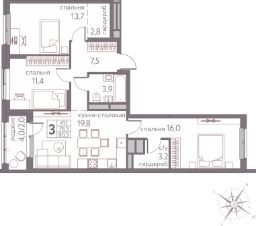 Продаётся 3-комнатная квартира в строящемся доме (Серебристая, 3), срок сдачи: III-кв. 2026, общей площадью 80.3 кв.м., на 3 этаже. Теплые кварталы "Погода" — это новый грандиозный проект от создателя Спортивного микрорайона "Ива", федерального застройщика "Девелопмент-Юг" .