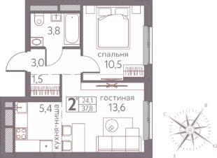 37,8 м²