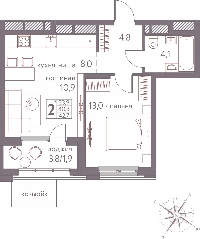 42,7 м²