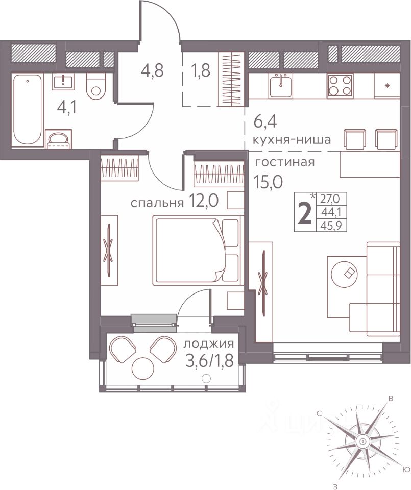 Продаётся студия в строящемся доме (Серебристая, 3), срок сдачи: III-кв. 2026, общей площадью 45.9 кв.м., на 5 этаже. Теплые кварталы "Погода" — это новый грандиозный проект от создателя Спортивного микрорайона "Ива", федерального застройщика "Девелопмент-Юг" .