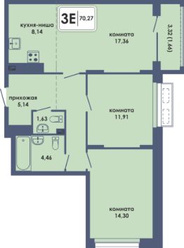 Общая площадь70,27 м²