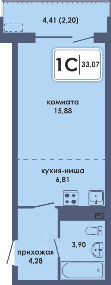 Общая площадь33,07 м²