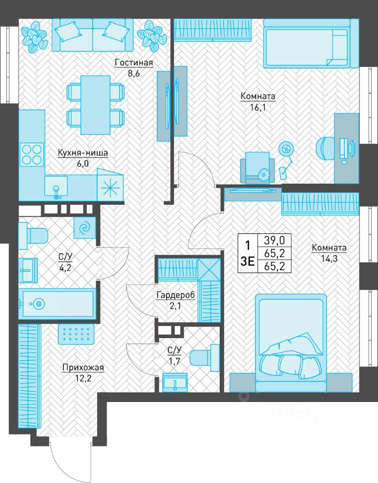 Площадь квартир от 29 м2, тихий двор, большая парковка и закрытая территория!