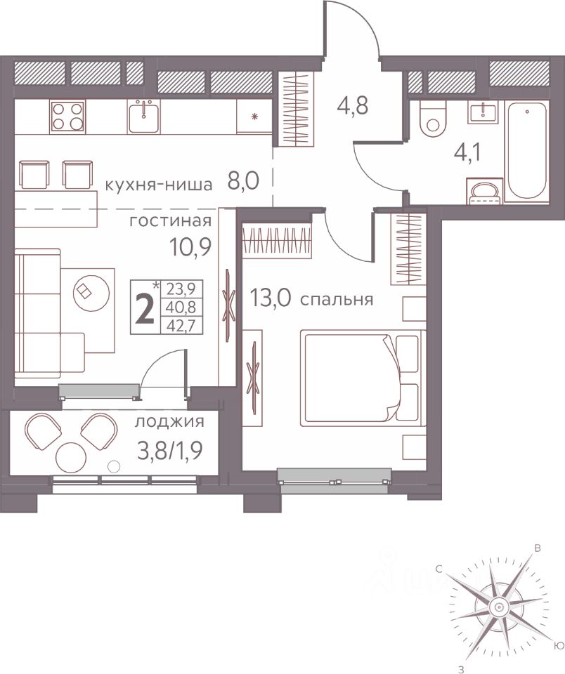 42,7 м²