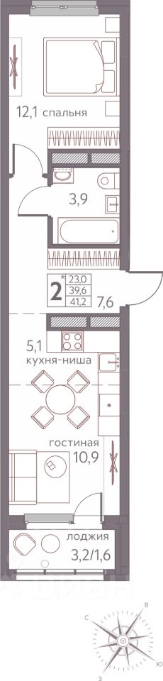 41,2 м²