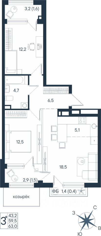 43,2 м²