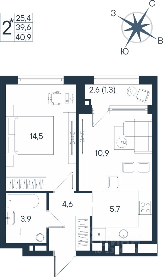 40,9 м²