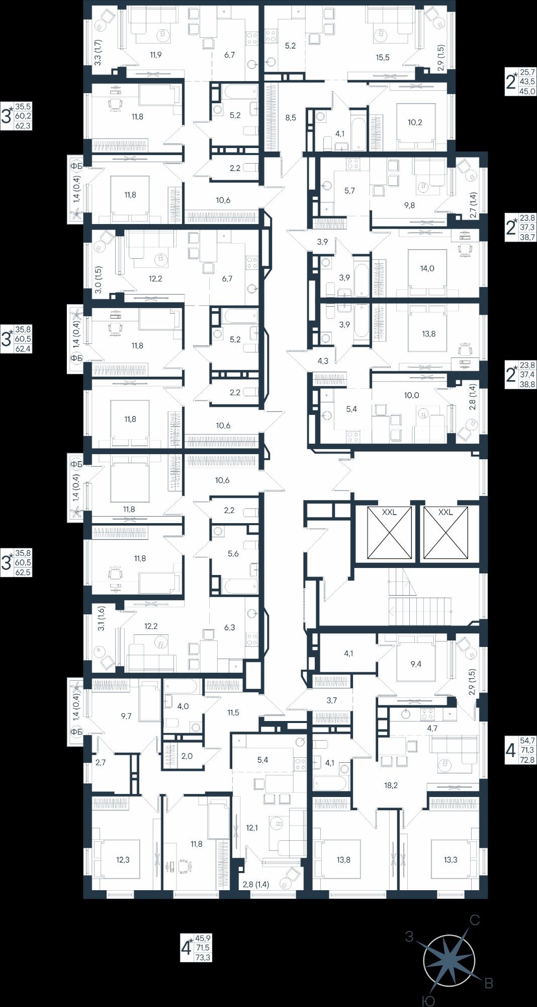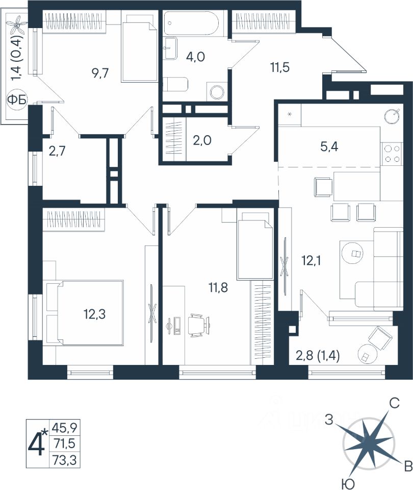 73,3 м²