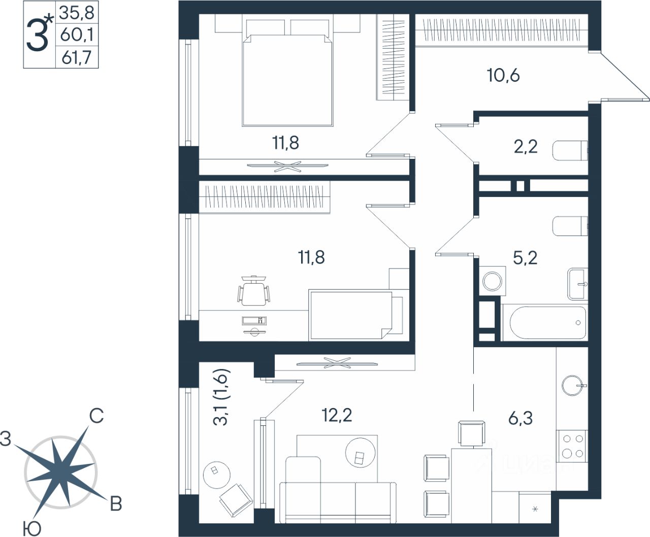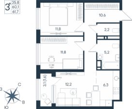 61,7 м²