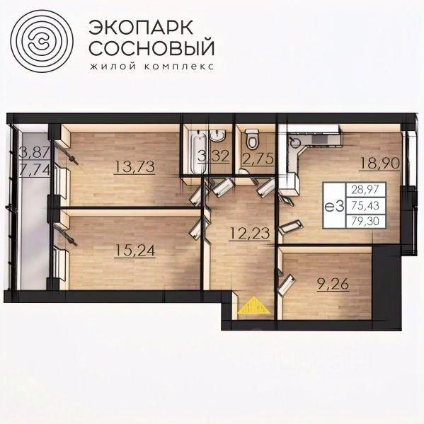 Общая площадь75,2 м²