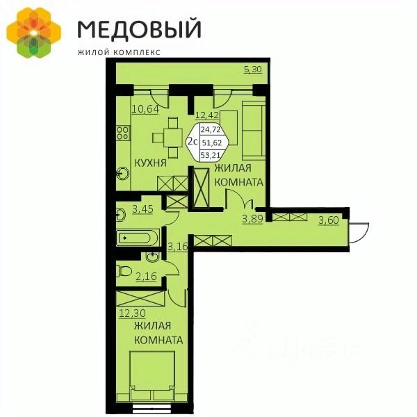 Общая площадь51,6 м²