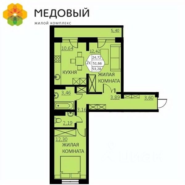 Общая площадь51,6 м²