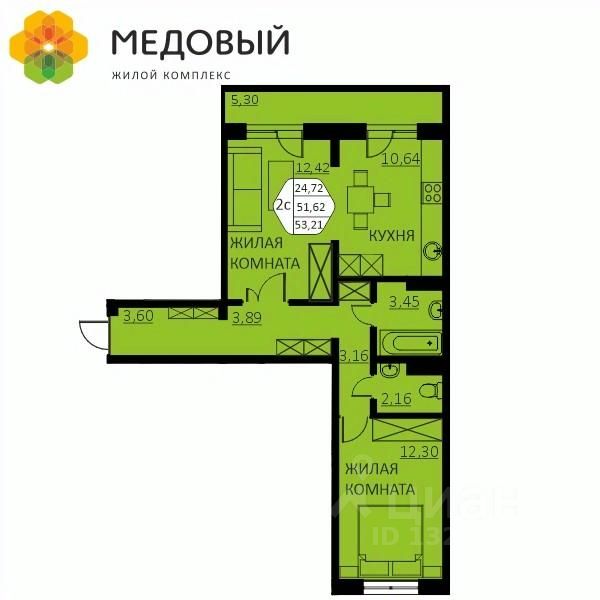 Общая площадь51,6 м²