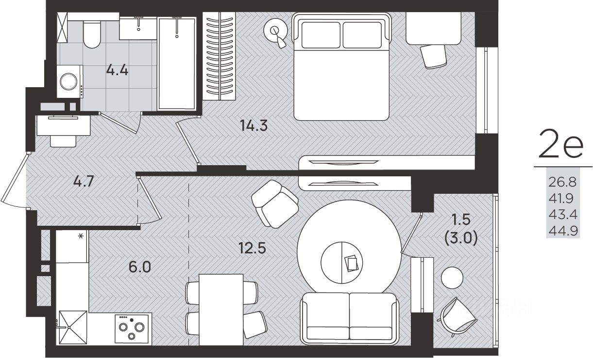 Общая площадь43,4 м²