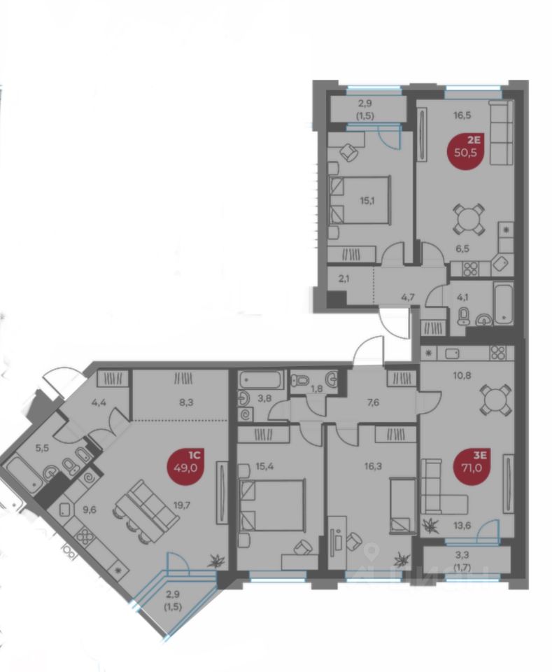 Предлагаем вашему вниманию лот из трех квартир, расположенных рядом: