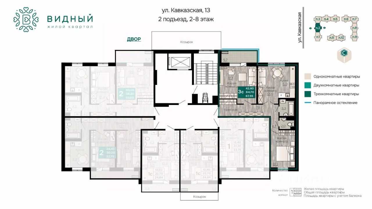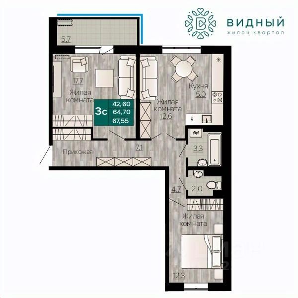 Общая площадь67,55 м²