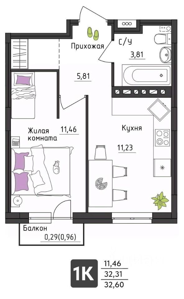 • Сантехника: ванна, унитаз, раковина, смесители. Полотенцесушитель.