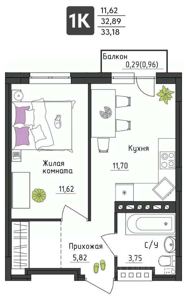 • Сантехника: ванна, унитаз, раковина, смесители. Полотенцесушитель.
