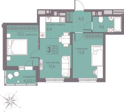 57,4 м²