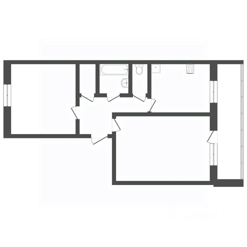 Объект отличается продуманной планировкой: 2 изолированные комнаты площадью 20,4 кв. м. и 13,5 кв. м., кухня 7,5 кв. м. Раздельный санузел, просторная прихожая. Имеются 2 застекленные лоджии, одна из них просторная на 2 комнаты. Помещения правильной геометрической формы позволяют рационально использовать пространство.