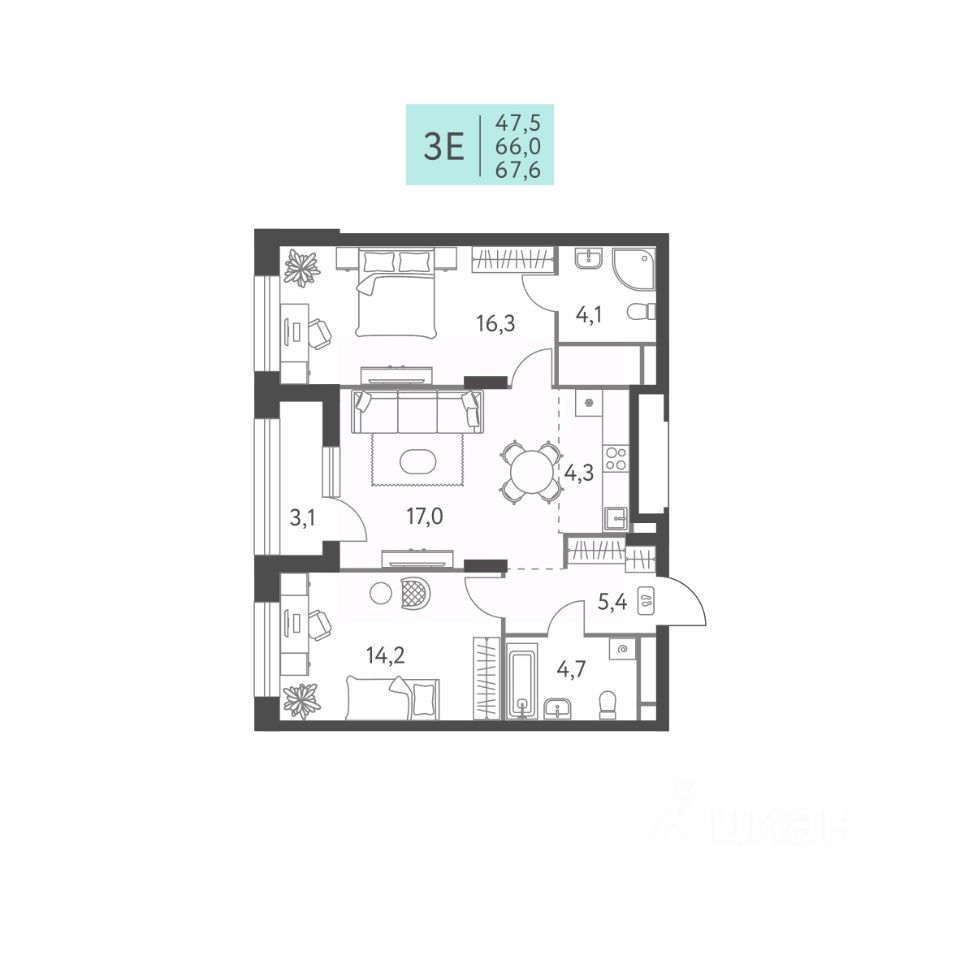 Общая площадь67,6 м²