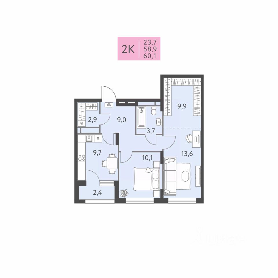Общая площадь60,1 м²